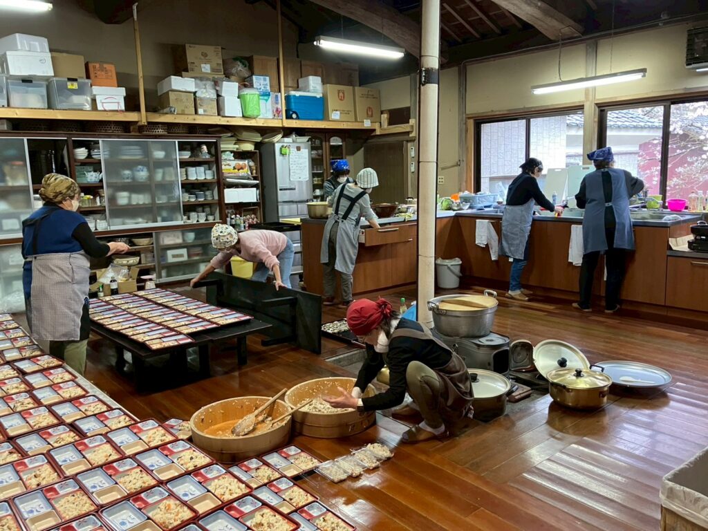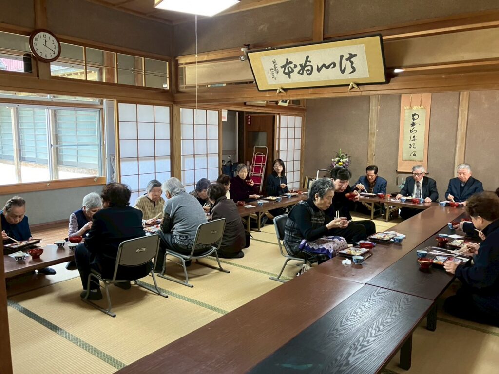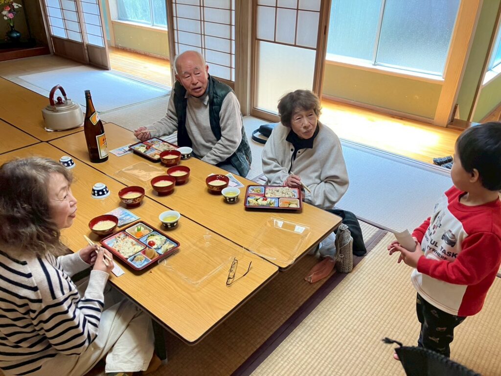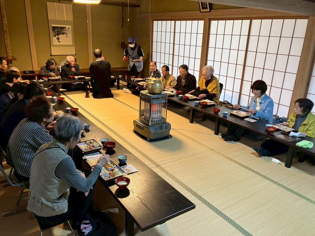 3部屋に分かれて、お弁当と温かいまめ汁をいただきました。
