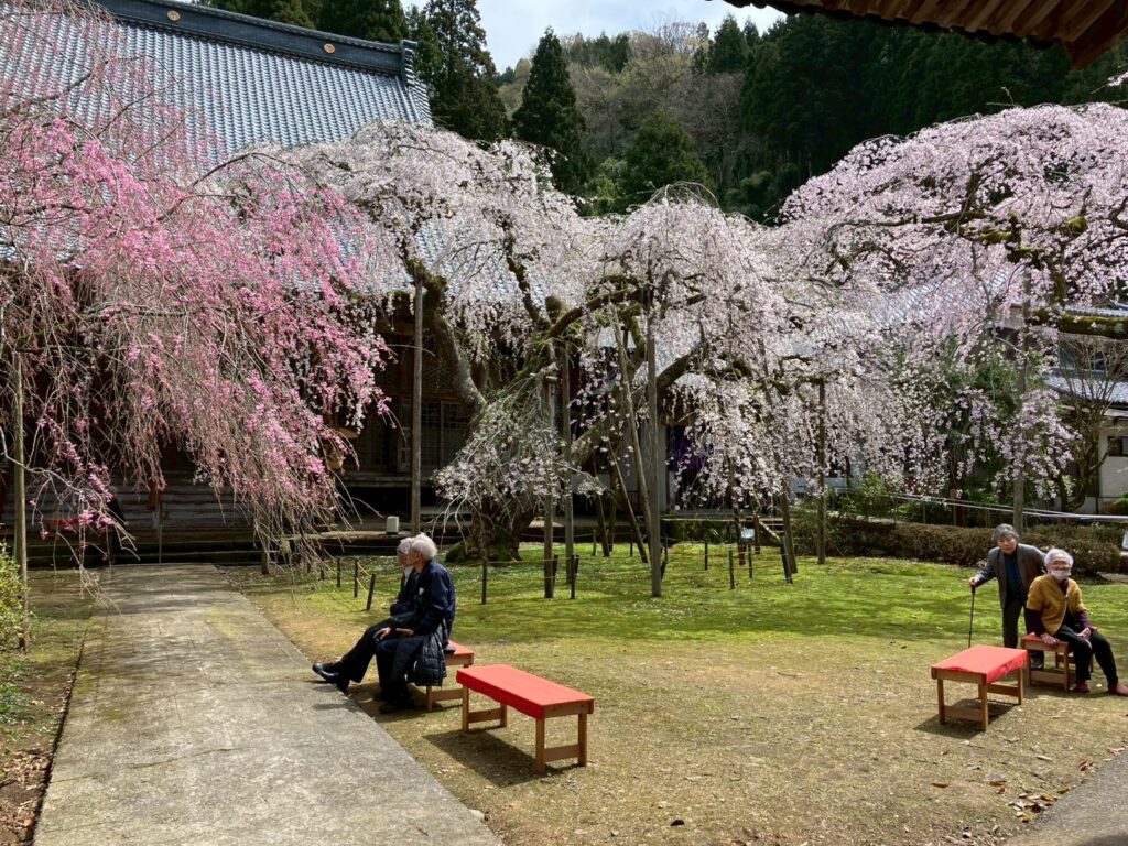 2日目はお昼に向かって晴れの天気となり、暖かくなるにつれて濃いピンクの八重桜も咲き始め、絶好のお花見日和となりました。