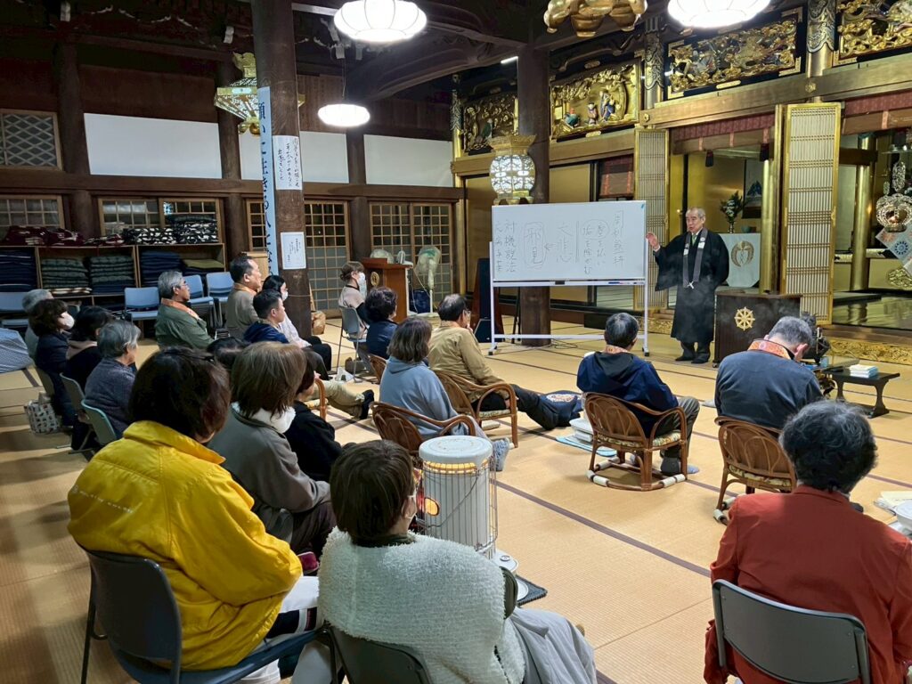 永代経というのは仏教の教えやその教えを聞くご縁が代々続くようにと願って行われる行事であること、仏教の教えは亡き人をご縁として生きている私たちがいただくものであることなど、例話を交えて仏教についてとても分かりやすくお話ししてくださいました。