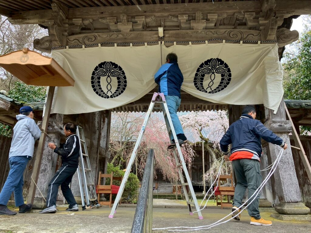幕張りや柵の紐の取り換えなど、準備もしていただきました。